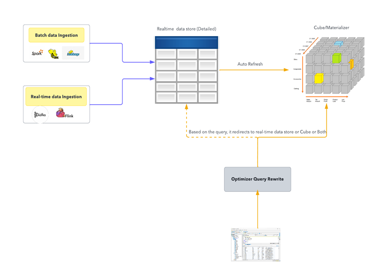 The above diagram explains how the proposed solution will work. It uses “unified lambda architecture” which provides Batch, Stream, and Speed layers together. The data ingested into detailed tables and Rollups/Cubes will be synced behind the scenes based on the design and instructions provided.